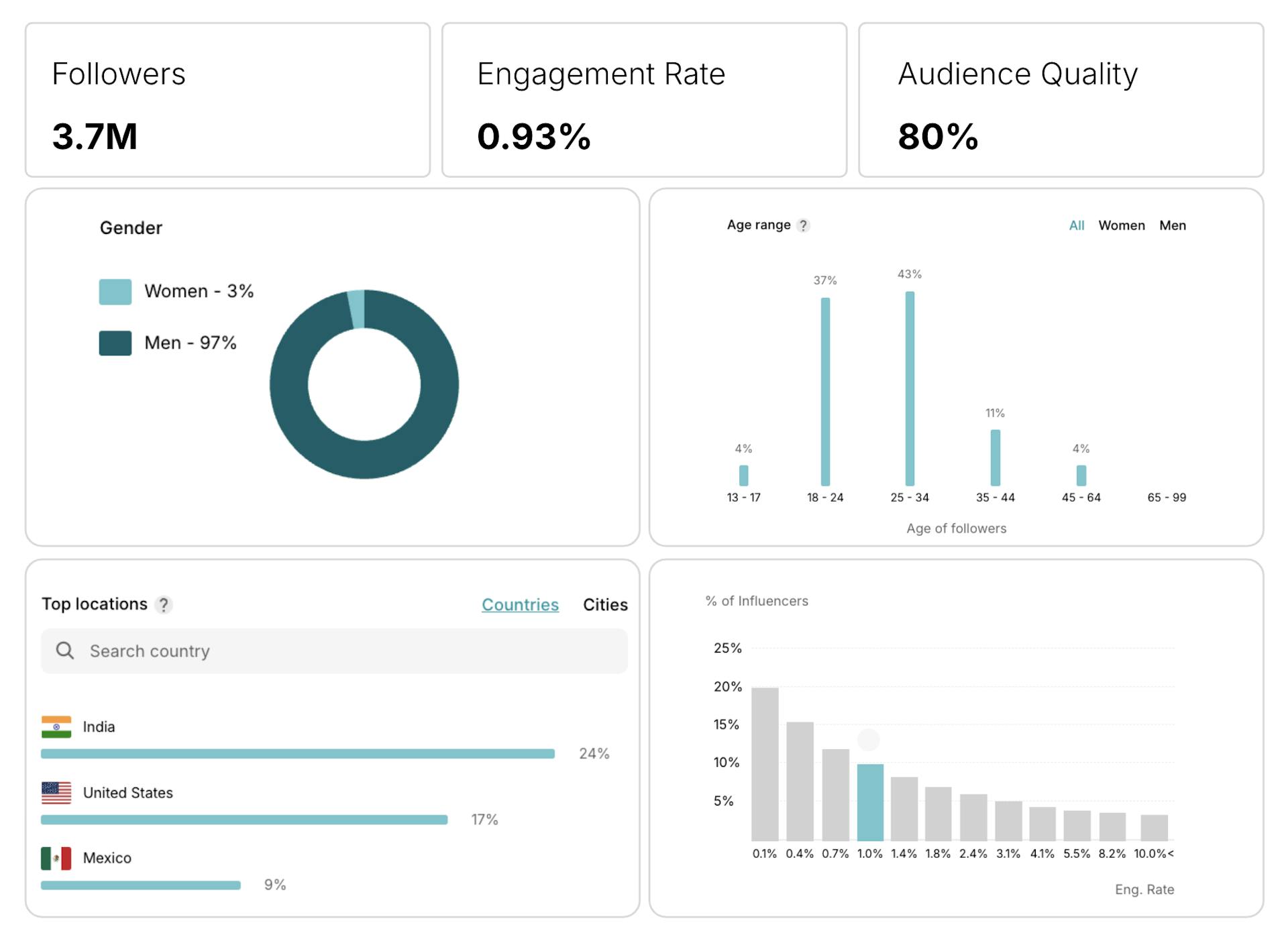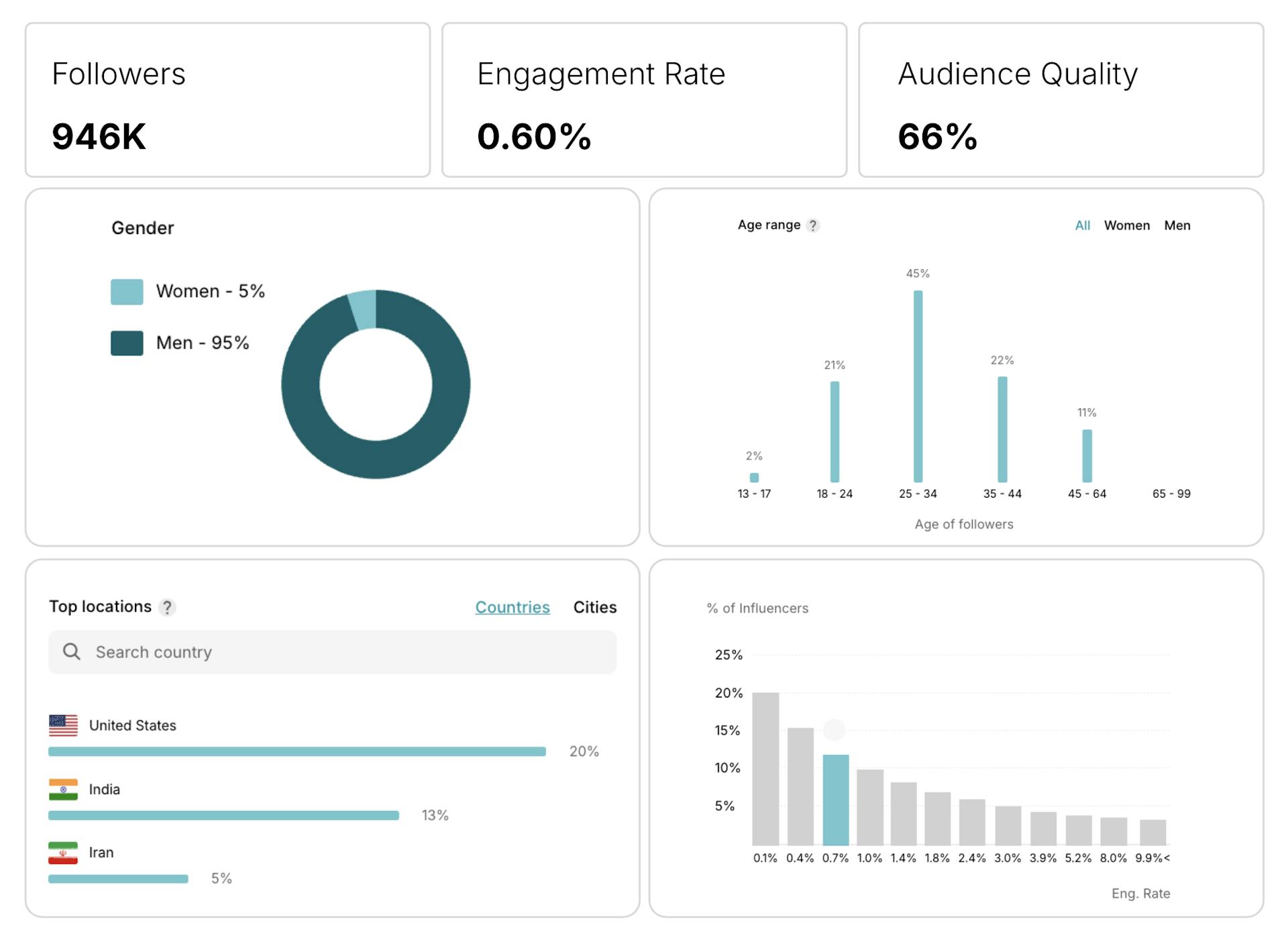 Want to refine your search to find golf influencers in specific countries, target audiences, or even the fastest-growing Instagram accounts? Try Lefty for free and discover the perfect influencers for your brand!