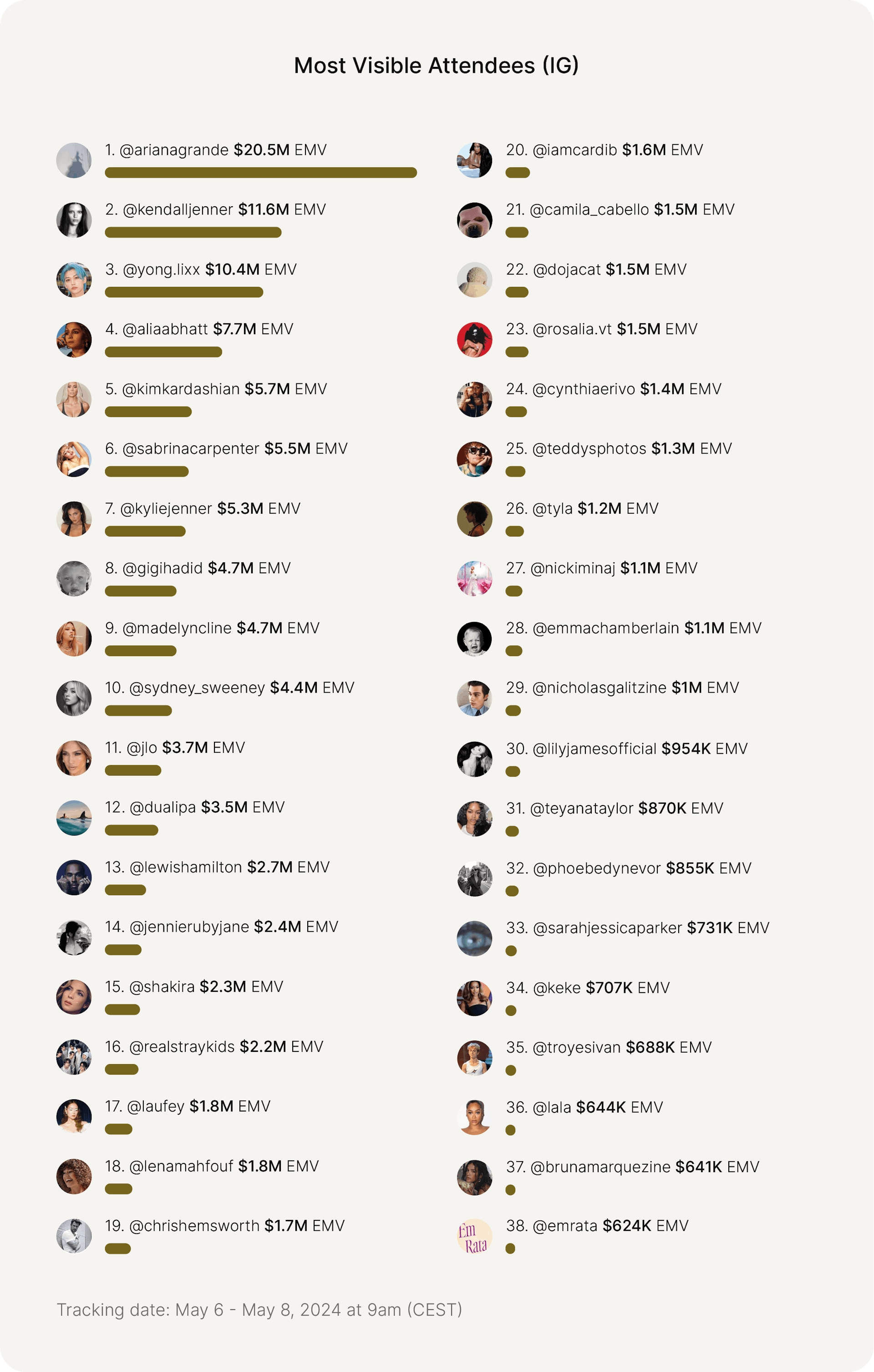 - @arianagrande: $20.5M EMV