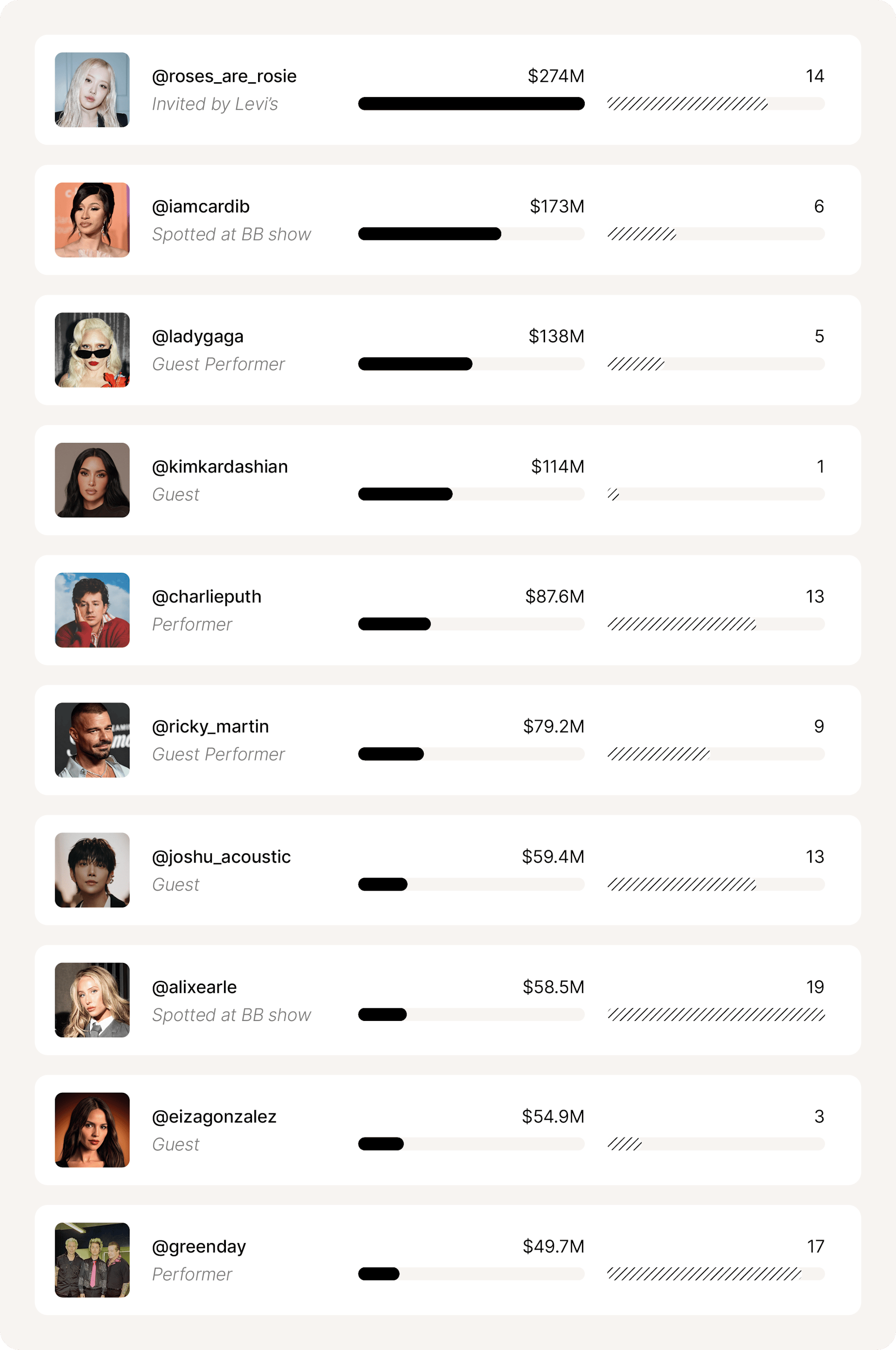 This ranking shows how K-Pop, American and Latin stars played a key role in the worldwide cultural reach of the event.
