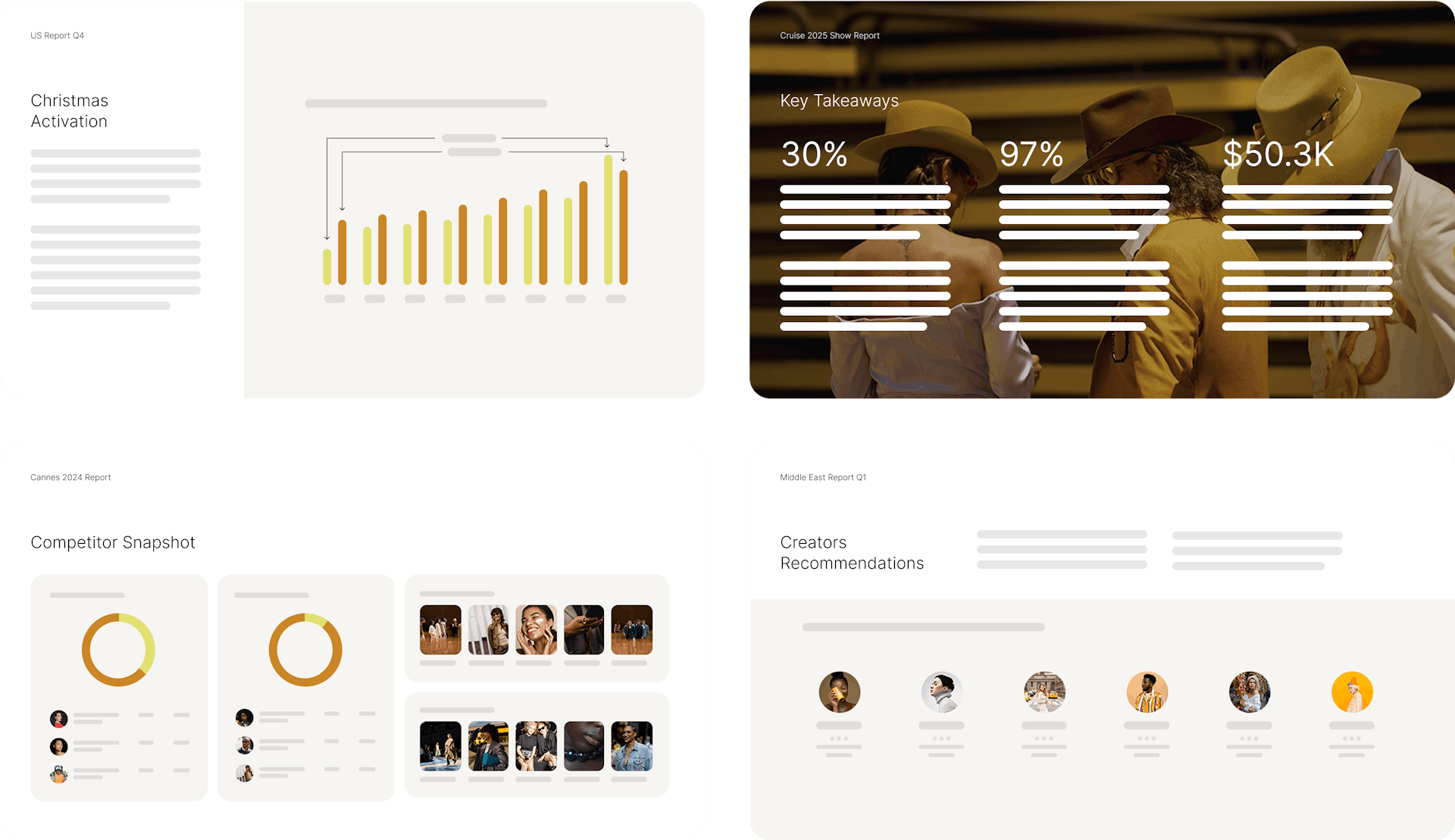 Stay ahead with our seasonal reports on influencer marketing trends, competitor strategies, and tactics to boost brand visibility on global social media networks. These reports are ideal for digital marketers seeking actionable insights.